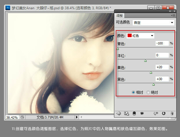 把漂亮美眉的外景照片弄成梦幻甜美的效果,是不是每天看着想法可以更多些哦。最终效果: