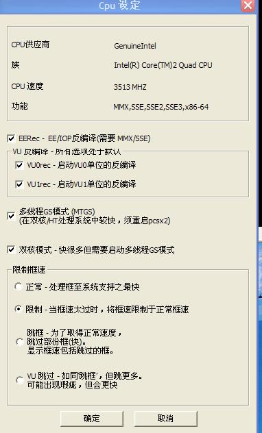 设定 是此模拟器最重要的设置地方。。包括所有插件设置和CPU。记忆卡设置。
