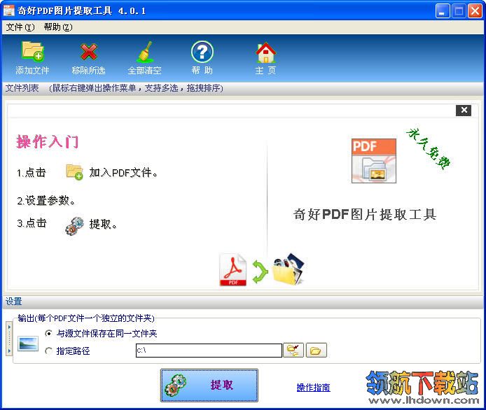 制作奇好PDF图片提取工具的缘由:您从网上下载或其他人传给您的PDF文档,是不是有些图片是您想要提取出来的?用这个软件可以从PDF文档中提取所有图片文件。持批量PDF文档图片提取,体积小,运行速度快,独立运行,无需其他运行库支持。软件支持windows操作系统(xp/2k/vista/win7/win8)。