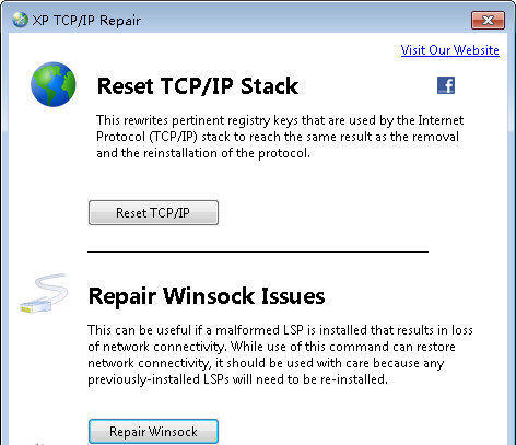 当你碰到这种情况时,可以试试这个小软件网络协议修复工具XP(TCP/IP Repair),它能修复你的tcp/ip协议栈和winsock lsp,将其恢复到初始状态,从而解决网络访问问题。请注意,它可能会导致你的网络设置丢失,仅做为最后手段使用