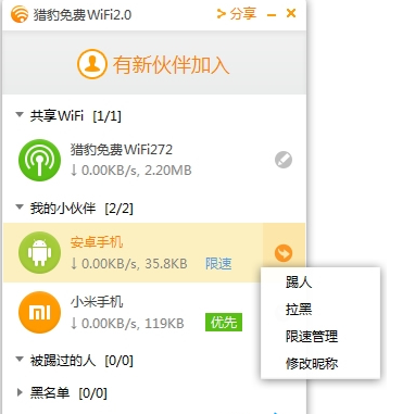 猎豹免费wifi是一款免费、极简的无线路由器,用户只需下载并运行它,就能将电脑瞬间变成免费WiFi,从而让手机、PAD等无线设备免费上网。