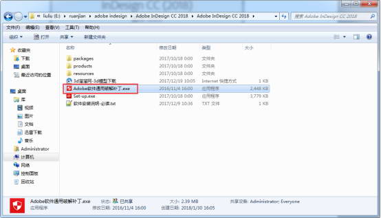 adobe indesign cc 2018正在安装中。 如图二。3第三 步:找到破解补丁