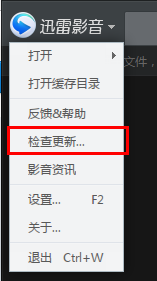 方法二:点击迅雷影音右边展开按钮,选择“检查更新”。