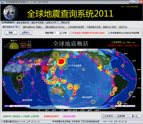 1.最新地震信息查询(相信会对中国地震网的服务器进行考验,也该扩容改进了,访问速度太慢了,还没国外服务器快呢) 2.全球地震实况图分析(数据采集美国地震台服务器) 3.全球地震实况图当日回放(前提是程序自动收集一天的概括图片,才能进行回放播放) 4.地震常识学习 5.地球板块构造查询 6.地震预兆查询 7.中国地壳断裂带查询 8.作者思维栏目是我自己根据自己的想法做的图,不具备科学性,只是我自己对天体的见解理论。 等