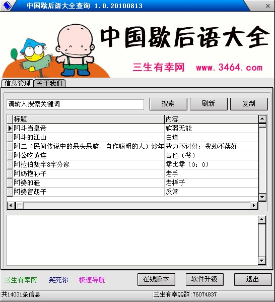 简介:根据香港粤语协会标准编写的最新工具。配合粤语协会发布的 粤拼输入法 助您在最快的时间学习好标准的粤语。工具可以,查音标,音标联系,提供发音,还可以自定义练习任务软件有一