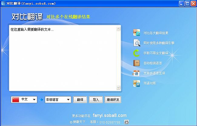 简介:搜霸翻译提供即时免费的中、英、日、韩等语种的全文翻译服务。对比翻译,结果更精准!由搜霸天下倾力打造!对比呈现翻译结果,好结果,即时看。搜霸出品,必属精品! 搜霸翻译同