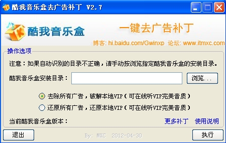 简介:酷我音乐盒去广告补丁用来去除酷我音乐盒子的弹窗和播放广告,并且破解了本地VIP功能。此补丁原理很简单,依旧是对那两个img文件的修改,有兴趣的朋友自己对比一下备份文件就知道改